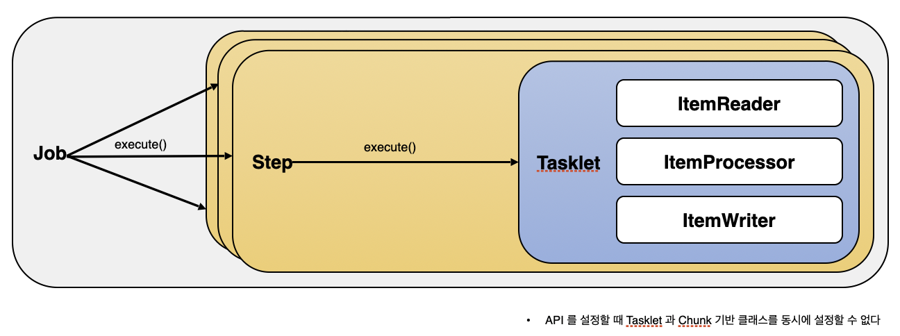 - 배치 작업을 어떻게 구성하고 실행할 것인지 Job 의 세부 작업을 Task 기반으로 설정하고 명세해 놓은 객체