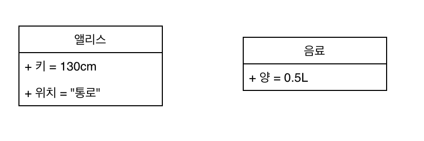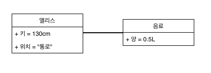 때로는 단순한 값이 아니라 객체를 사용해 다른 객체의 상태를 표현해야 할 때가 있다. 앨리스가 현재 음료를 들고 있는 상태인지를 표현하고 싶다면 어떻게 할 것인가? 앨리스라는 객체가 음료라는 객체와 연결돼 있는지 여부로 표현할 수 있다. 앨리스의 상태는 키와 위치라는 단순한 값과 음료라는 객체의 조합으로 표현할 수 있다. 결론적으로 모든 객체의 상태는 단순한 값과 객체의 조합으로 표현할 수 있다.