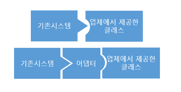 우리나라와 다른 콘센트나 전압(220V)을 쓰는 외국에 가면 그 나라의 콘센트와 전압(110V)을 사용할 수 있게 해주는 어댑터를 볼 수 있다. 어댑터란 형식이 다른 둘 사이에 연결되서 이 둘이 호환될 수 있도록 해주는 도구이다. 객체지향에서 어댑터는 보통 인터페이스가 다른 서로 다른 객체들이 같은 형식 아래 자동할 수 있도록 하는 역할을 한다.