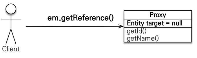 - em.getRerence() : 데이터베이스 조회를 미루는 가짜 엔티티(프록시) 객체 조회