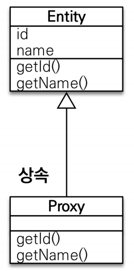 - 사용하는 입장에서는 진짜 객체인지 프록시 객체인지 구분하지 않고 사용하면 됨.